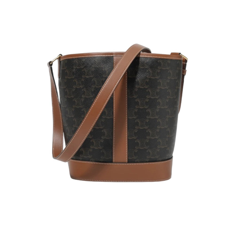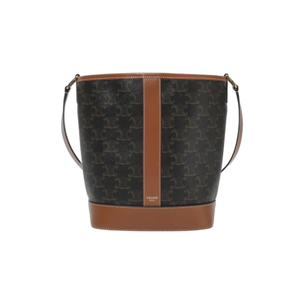 셀린느 트리옹프 캔버스 & 카프스킨 스몰 버킷백 탄